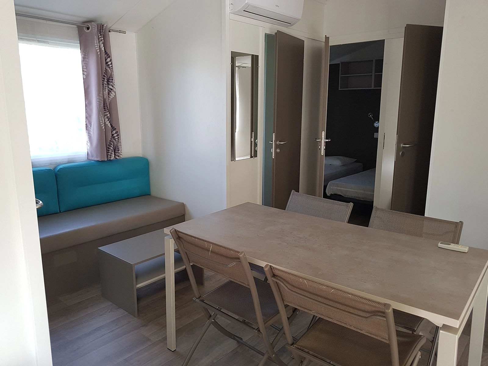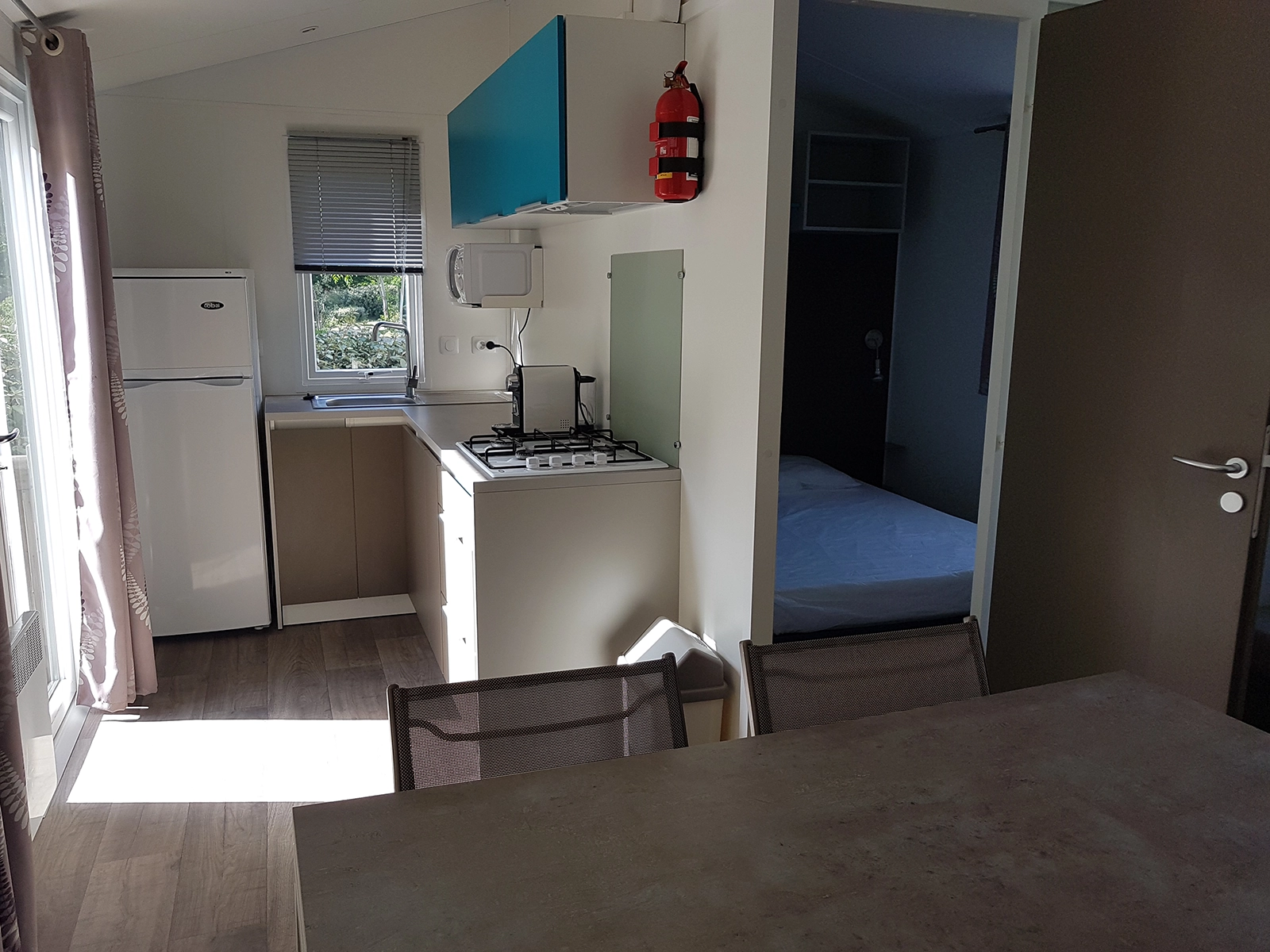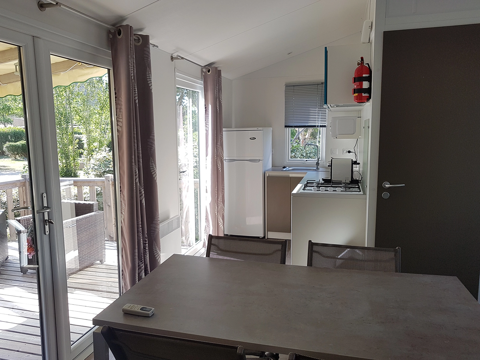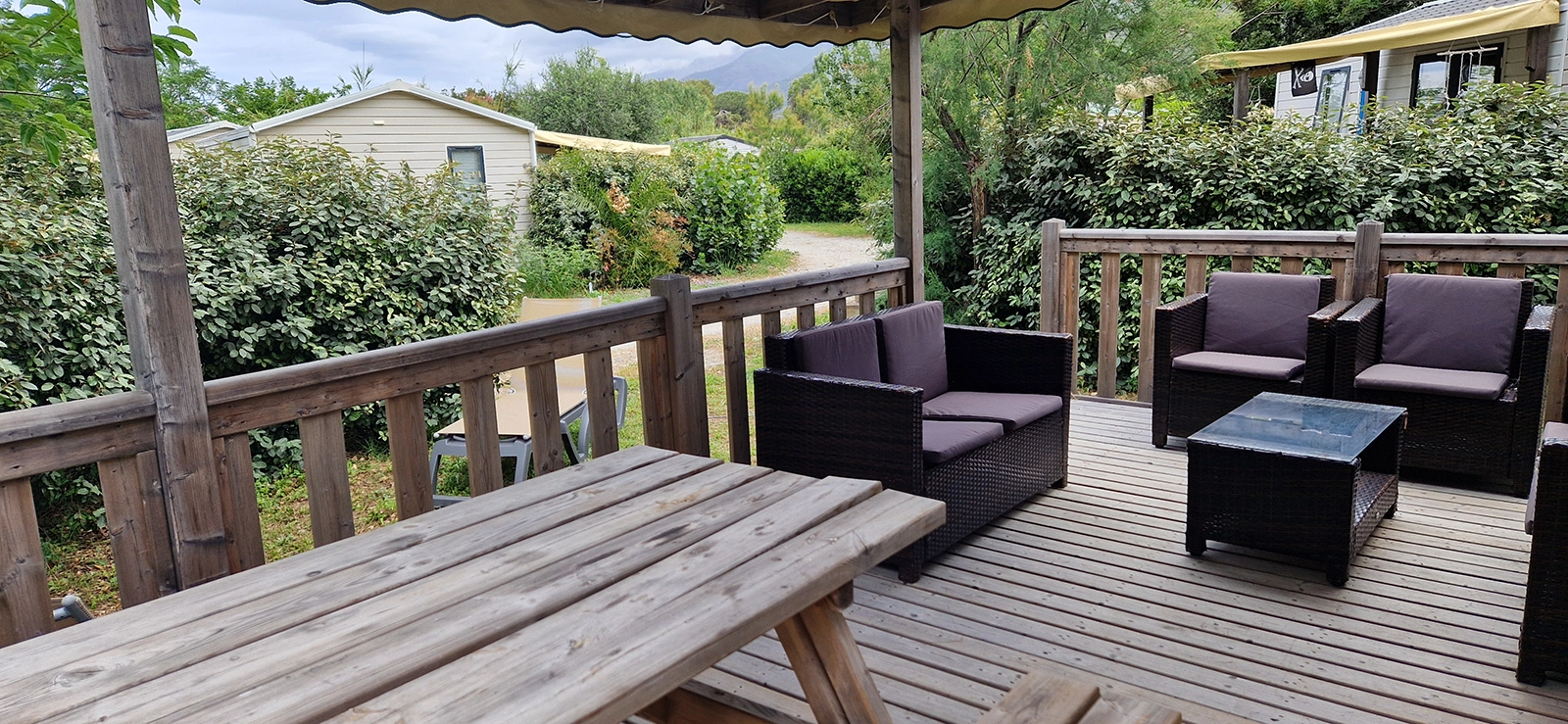 Nos mobil-homes "PANORAMIQUE", lumineux et spacieux, sont totalement ouverts sur l'extérieur, dotés d’une cuisine d'été avec vue et accès plongeant sur la terrasse et d'un coin repas judicieusement positionné au plus proche des ouvertures. Parfaits pour les familles et les vacances entre amis, les mobil-homes "PANORAMIQUE" possèdent 3 chambres bien positionnées (coin parents et enfants séparés) et sont climatisés. Ils possèdent, de plus, les équipements suivants :